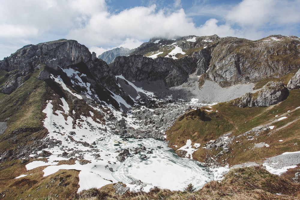 Ce petit lac, cela faisait au moins un an qu’il me faisait de l’oeil. Il était noté là, sur ma petite liste des lacs qu’il me reste encore à voir. J’avais quand même quelques doutes sur le fait qu’il soit dégelé à cette période de l’année (début mai), mais comme ce coin-là de la Haute-Savoie regorge d’endroits aussi beaux les un que les autres, je me suis dit que quoiqu’il arrive, on s’en prendrait plein les yeux quand même.