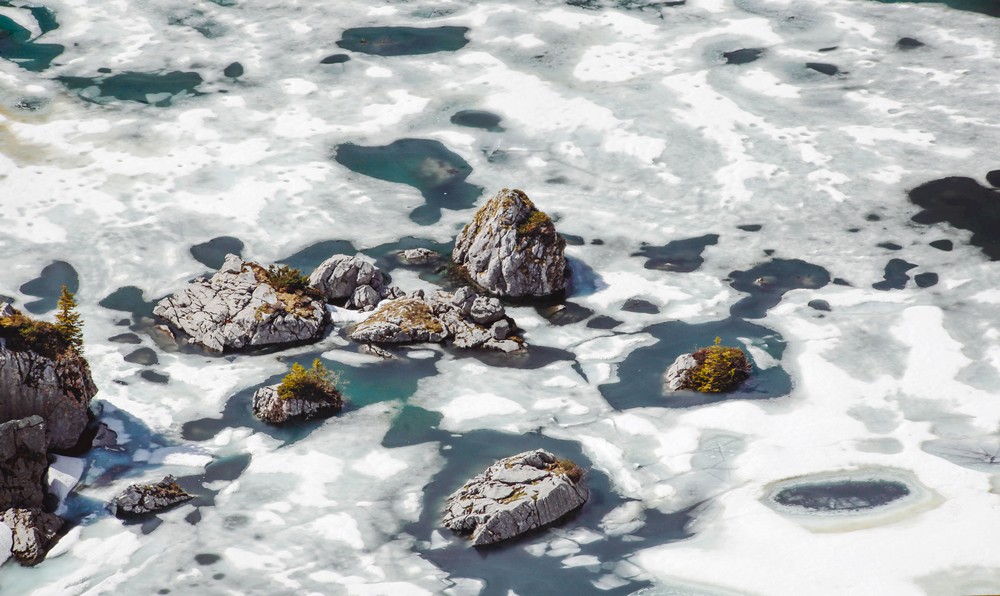 Juste le temps de nous remettre de nos émotions et nous étions repartis de plus belle pour voir le lac de Darbon. Le suspens était à son comble. Gelé pas gelé ? ET OUI ! Monsieur était gelé et bien comme il faut s’il vous plaît. Tristesse ! Les lacs gelés sont terriblement beaux, mais si la neige dessus n’a pas encore fondu, ils sont inexistants . Obligé de retourner là-bas cet été 🙂