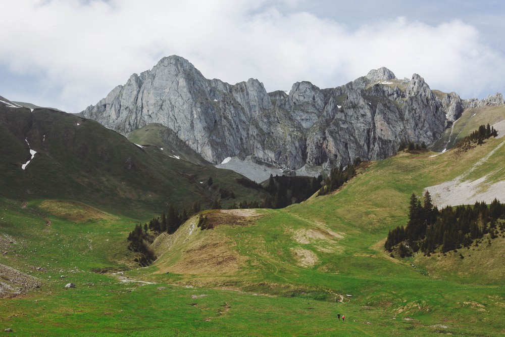 La vue est imprenable sur les dents du Midi. Cette montagne est bien trop photogénique ! Coté météo, un temps parfait pour de la rando, pas trop chaud ni trop froid, il faisait beau avec quelques nuages présents pour donner un peu de dynamisme à nos images. La seule chose que l’on n’avait pas forcément prévue : la neige. Du coup, pas vraiment le choix que de mettre les pieds dedans pour atteindre le lac. Si en montant, il n’y avait pas trop de problèmes à ce niveau-là, la descente elle, nous a valu quelques belles chutes et les mains bien rapées pour moi !