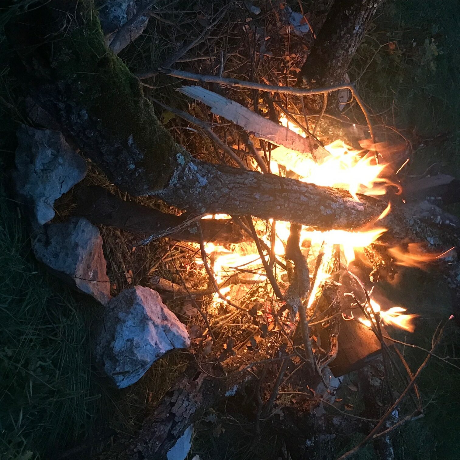 Trouver un petit coin d’herbe pour dormir, monter notre abri de fortune, chercher du bois pour le feu. Nous étions fin prêt à la partie qui m’intéressait le plus : apprendre à faire du feu. Nous avons vu plusieurs méthodes, mais la plus loufoque était de réussir à faire du feu avec une capote ! Mais pour utiliser cette méthode, il fallait du soleil, chose que nous n’avions pas.
