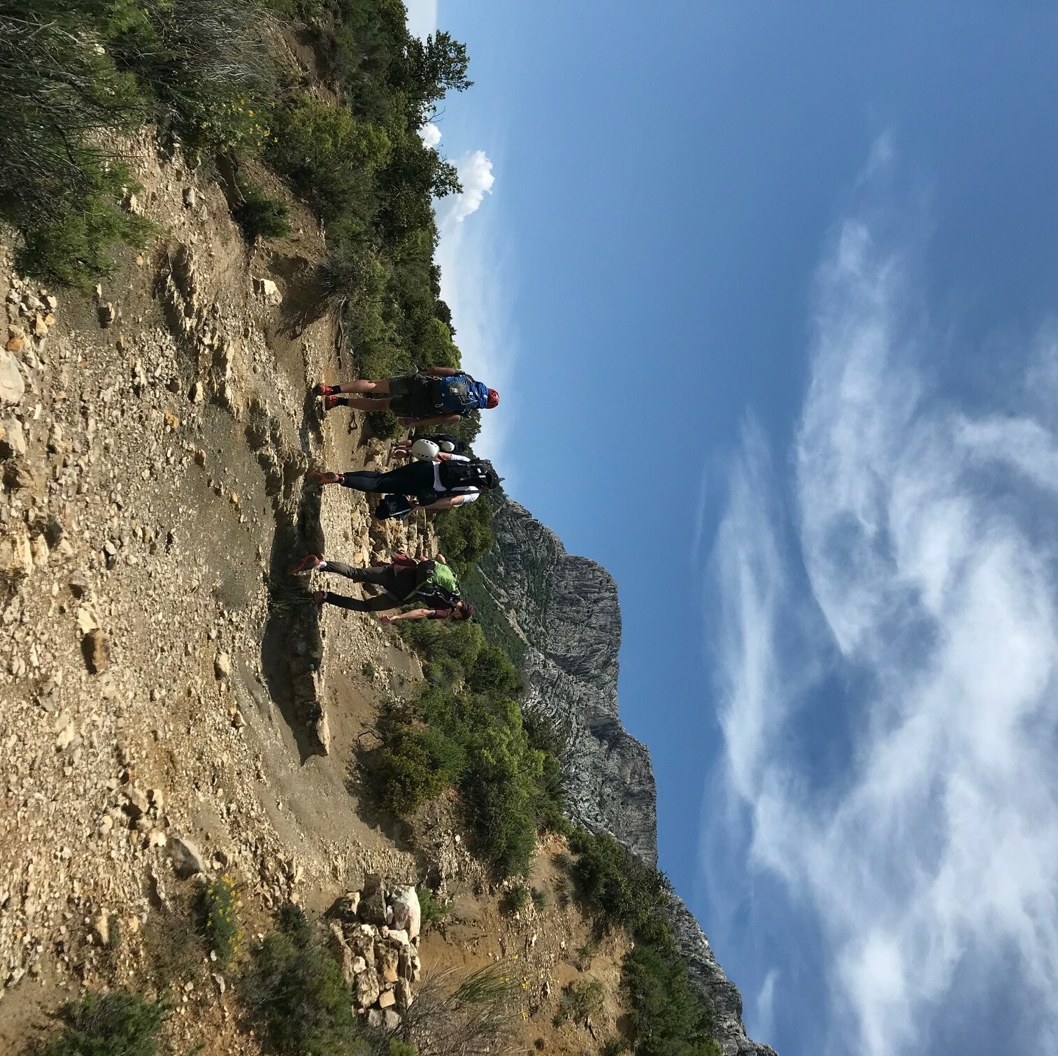 Nous nous sommes tous retrouvés à Aix en Provence. Après avoir fait un peu connaissance entre nous, nous avons récupérer le matériel pour les deux jours et sommes partis ensemble sur le premier lieu de randonnée. Cette première randonnée était assez particulière. Le but n’étant pas la prouesse technique, mais le début du stage de survie ! Avec Benjamin, notre guide, nous avons donc commencé par la première des choses à savoir : apprendre à lire une carte et se repérer sur cette dernière. Pour se faire, il nous montrait un point à atteindre, et nous devions le rejoindre. Le plus dur dans cet exercice étant de trouver avant tout où nous nous trouvions sur la carte, afin de savoir quelle route prendre pour partir !