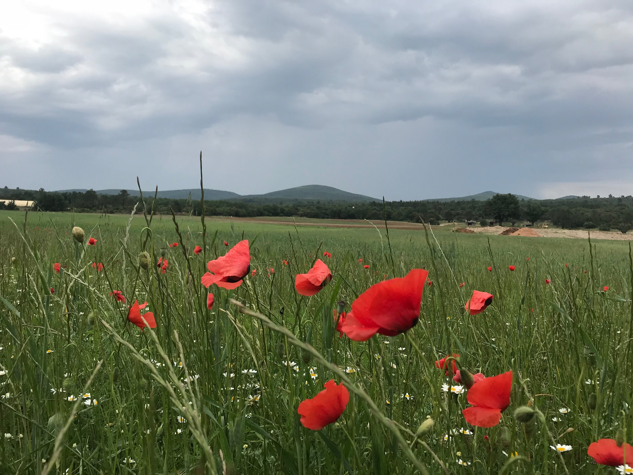 Réveil à 7 h : juste le temps de remballer le campement, prendre une petite collation et être à l’heure pour notre cession VTT ! J’adore cette sensation que procure un vélo. Un sentiment de liberté, de légèreté. Bon, dans les descentes remplies de cailloux, je ne faisais pas la maligne, grosse concentration pour ne pas tomber ! L’itinéraire était vraiment agréable, 17 km de vélo pour rejoindre notre prochain point de départ pour la randonnée à Sainte Victoire. Un grand nombre d’entre nous attendaient cette rando avec impatience, mais le temps commençait déjà à tourner. Nous nous sommes quand même engagés sur le chemin tout en nous disant que nous pourrions faire demi tour à tout moment. Il n’a pas fallu longtemps avant que nous rebroussions chemin. Une grosse averse suivie d’orages, nous sont tombés dessus. Opération Sainte Victoire annulée !